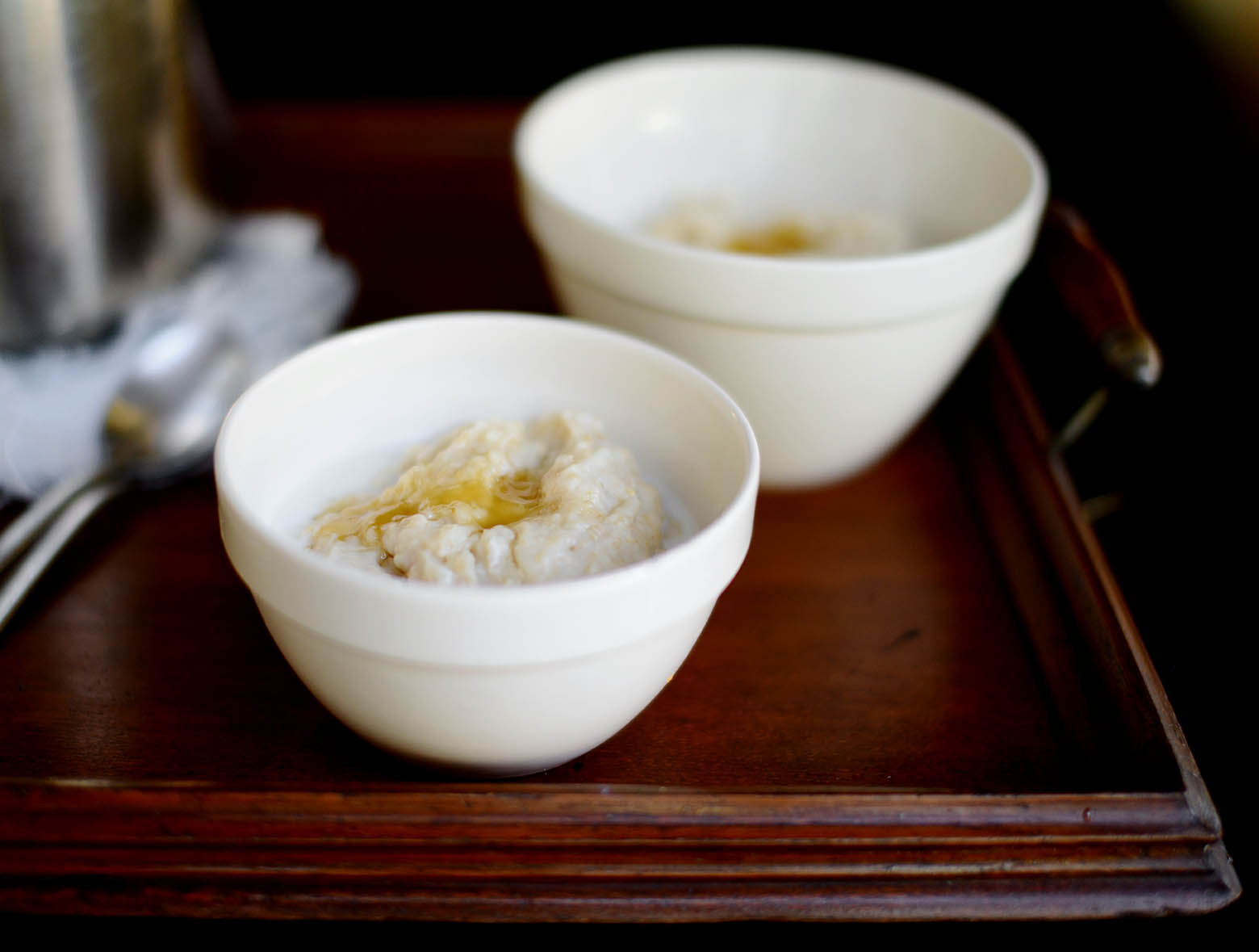 - In the morning, uncover and rapidly bring the oats to a simmer on the stove, stirring constantly to prevent sticking. Turn the heat down to low immediately and continue stirring for three to five minutes, until the porridge is creamy and thick.